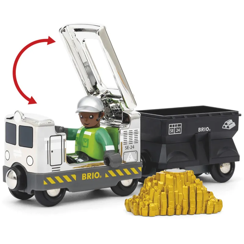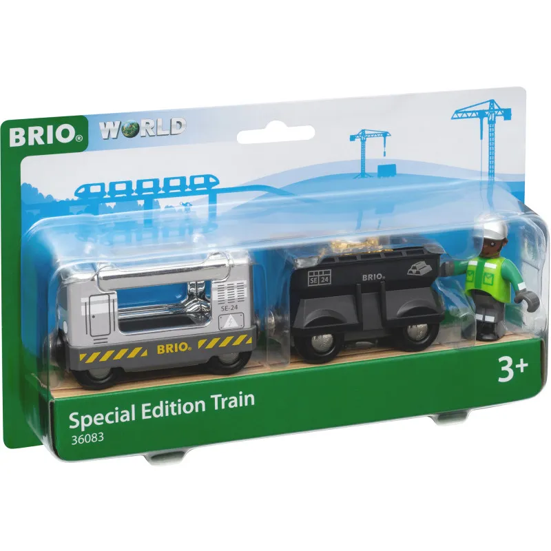 Специальный поезд Brio 2024 36083 — это великолепное дополнение к любой железной дороге BRIO World. Этот грузовой поезд впечатляет своей стильной серебристой внешностью и прочным черным грузовым вагоном. Водителя можно разместить на сиденье поезда через крышу, после чего поезд готов перевозить большой золотой самородок по рельсам!