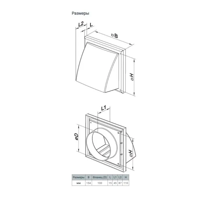 Выход стенной устанавливается на наружную стену на вентиляционное отверстие и подсоединяется к вытяжному воздуховоду диаметром 100 мм. Данная модификация вентиляционной решетки с обратным клапаном используется для вытяжной вентиляции.