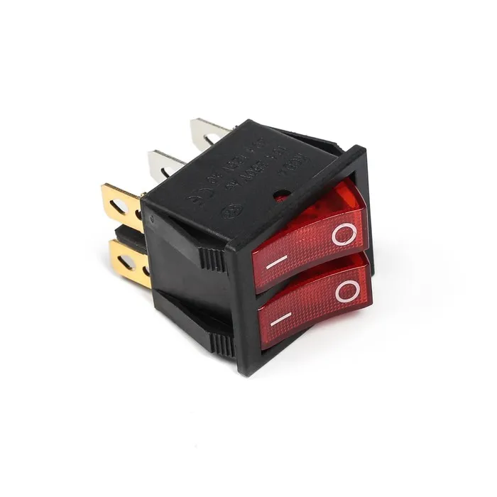 Выключатель клавишный двойной с подсветкой красного цвета – это компактный выключатель, который используется для управления двумя цепями. Подсветка клавиши помогает определить состояние выключателя в темноте, а два независимых контакта позволяют управлять двумя различными цепями. Этот тип выключателя широко используется в бытовой технике, электронике и других устройствах для удобства и безопасности использования.