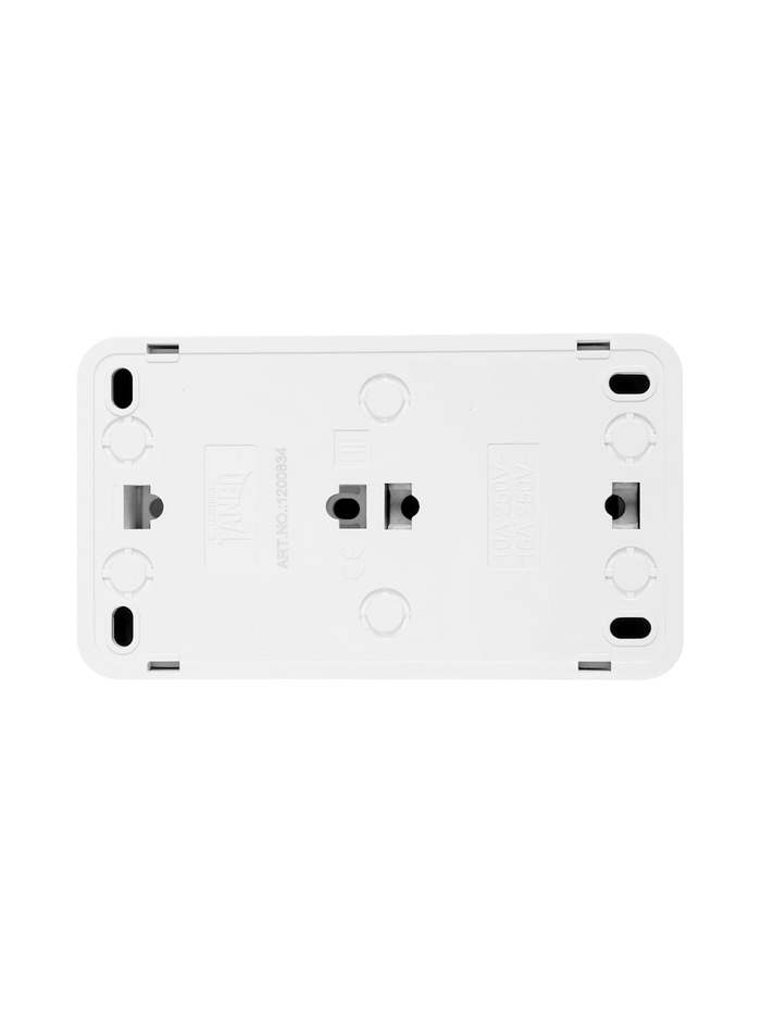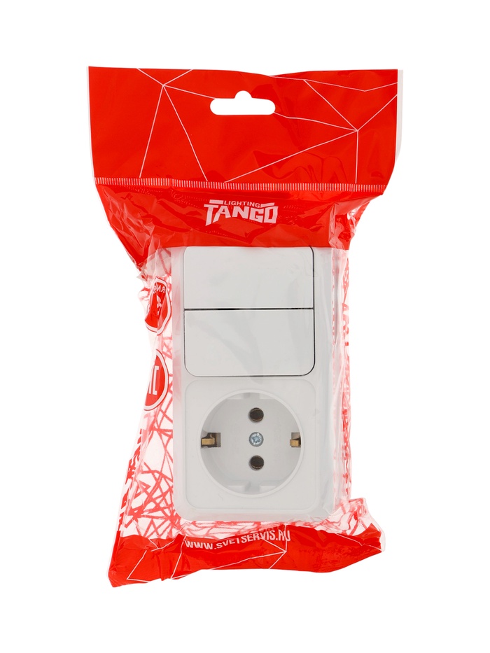 Выключатель двухклавишный с розеткой TANGO, 16 А, IP20, горизонтальный, с заземлением, белый — Характеристики