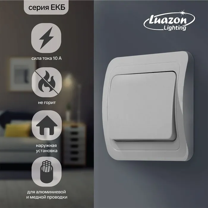 Выключатель проходной Luazon Lighting "Антей", 10 А, 1 клавиша, скрытый, белый — Характеристики