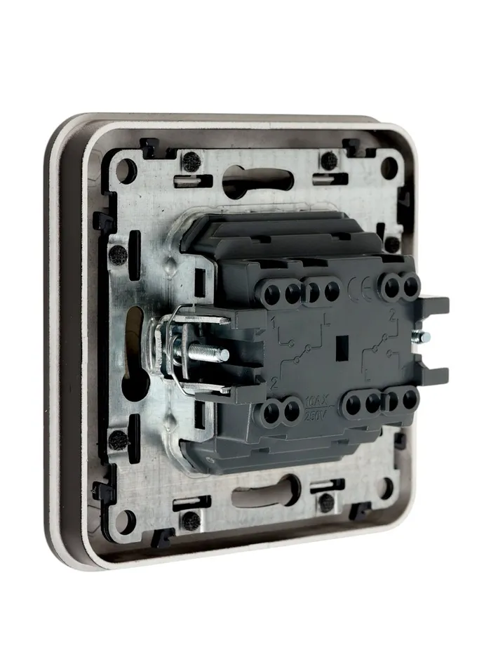 Выключатель проходной, серия Circular, 10 А, двухклавишный, скрытый монтаж, чёрный — Характеристики