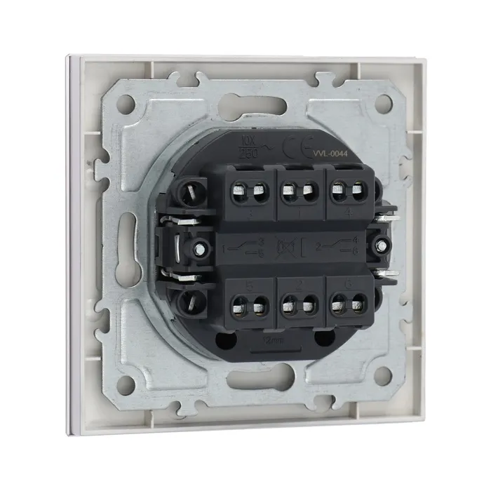 Выключатель проходной TOT Glossy Glass, 10 А, 2 клавиши, скрытый, стекло, серебристый — Характеристики