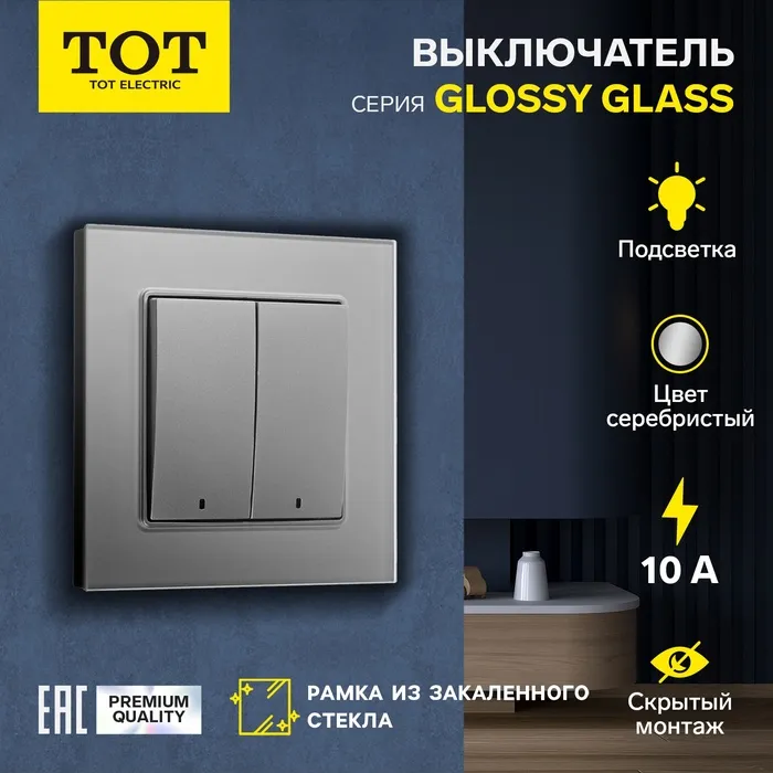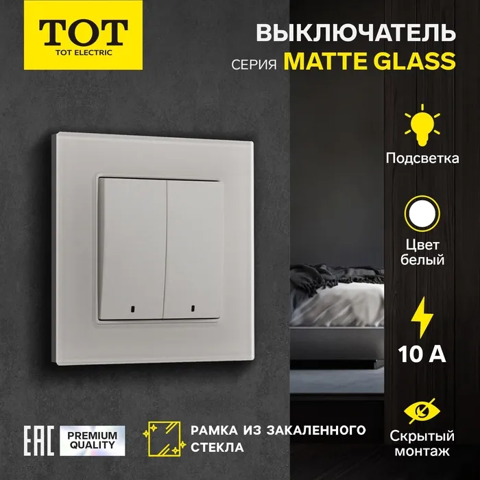 Выключатель проходной TOT Matte Glass, 10 А, 2 кл., скрытый, стекло, бежевый — Характеристики