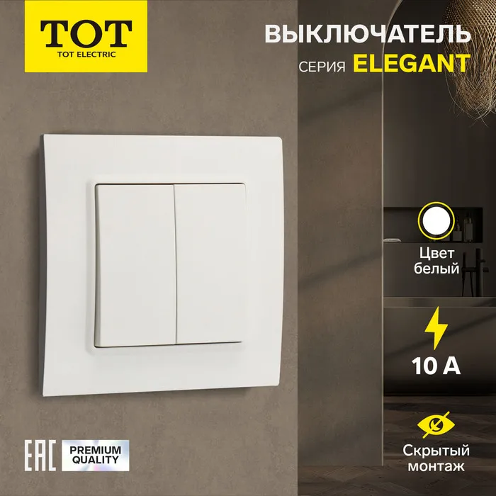Выключатель TOT Elegant, 10 А, 2 кл., скрытый, белый