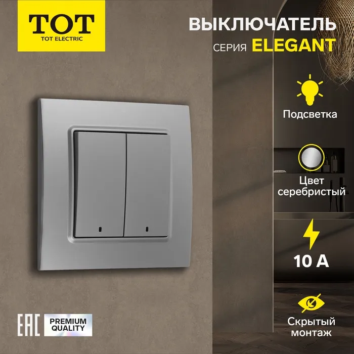 Выключатель TOT Matte Glass, 10 А, 2 кл., с подсветкой, скрытый, стекло, бежевый — Характеристики