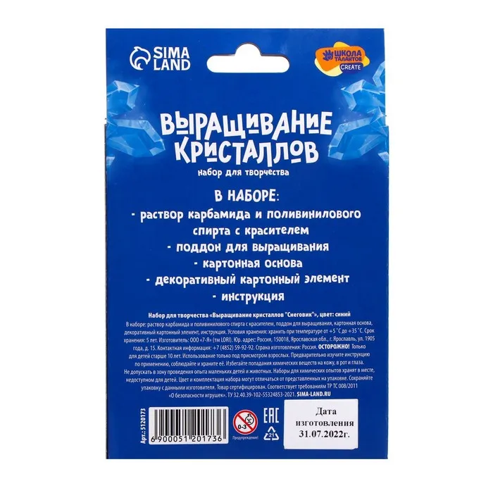 Выращивание кристаллов «Новый год! Снеговик», цвет синий, набор для творчества — Характеристики