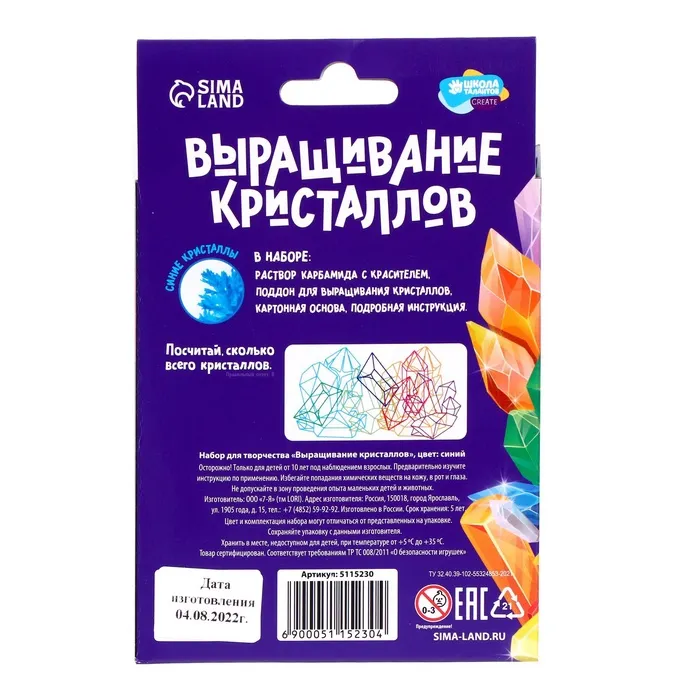 Выращивание кристаллов «Опыты. Лучистый кристалл», цвет синий — Характеристики
