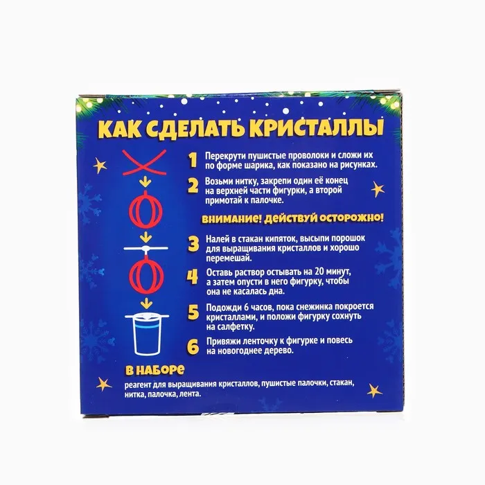 Набор для опытов «Кристаллы» — то, что нужно для полезного и интересного досуга! Такой подарок поможет ребёнку скрасить ожидание Нового года, а также позволит создать необычную игрушку и понаблюдать за процессом кристаллизации.
