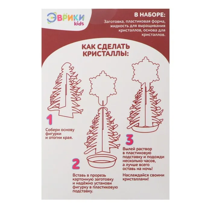 Создание кристаллов — увлекательное занятие, которое заинтересует детей и взрослых. В наборе для опытов вы найдёте все необходимые материалы и инструкцию для самостоятельного выращивания кристаллов в домашних условиях. Это возможность провести время весело и с пользой, наблюдая за тем, как маленькие кристаллы постепенно украшают ёлочку.