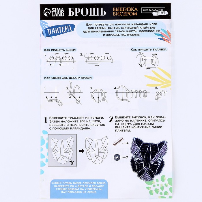 Вышивка бисером. Брошь «Черная пантера», набор для творчестваа‎ — Характеристики