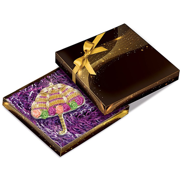 Набор для изготовления подарочного патча «Французский парасоль» из серии «Подарочный патч» — это стильное украшение, которое можно создать своими руками. Он станет идеальным подарком в элегантной упаковке. Вышитый патч, стилизованный под винтажный зонтик от солнца, с розочками из разноцветных атласных лент, будет интересен как взрослым, так и подросткам от 12 лет с навыками шитья. Патч вышитый сверкающим бисером на фетре, будет великолепно смотреться как украшение на жакете и как подарок в красочной коробке с декоративным наполнителем.