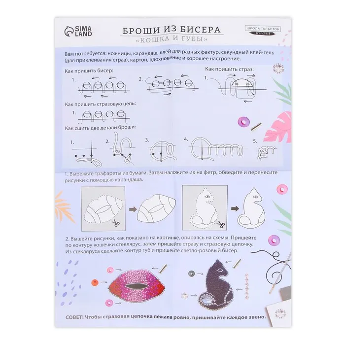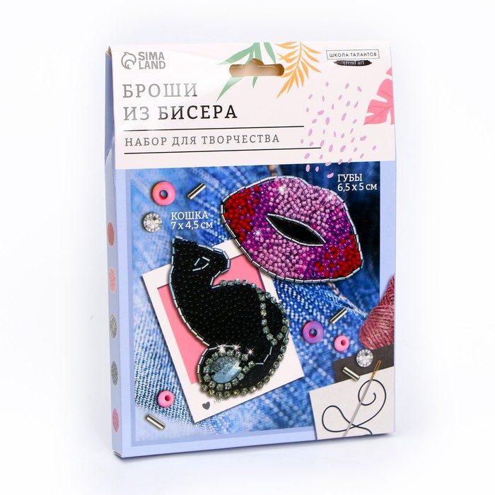 Вышивка бисером. Брошь «Кошка и губы», набор для творчестваа — Характеристики