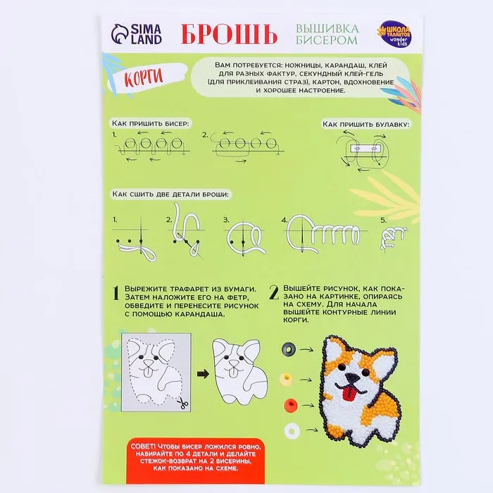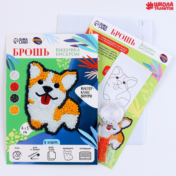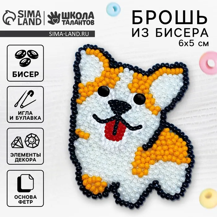 Вышивка бисером. Брошь «Пушистый корги», набор для творчестваа — Характеристики