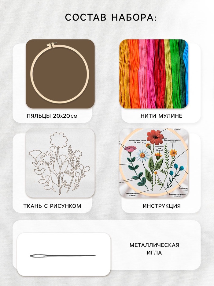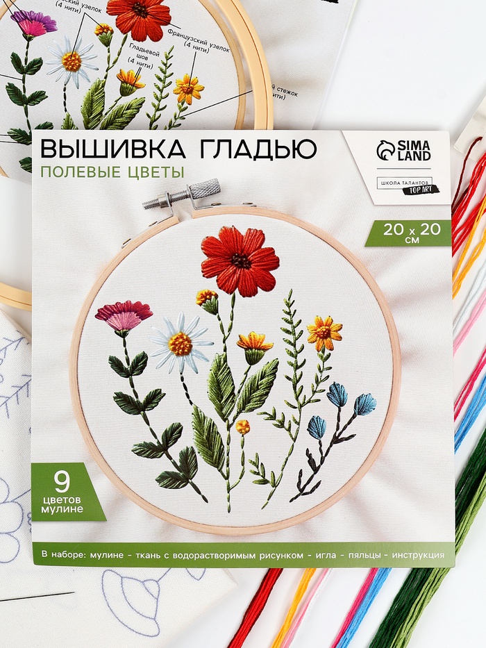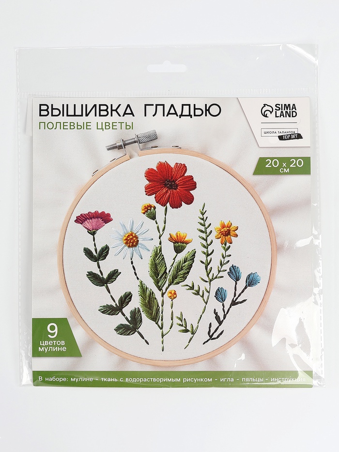 Вышивка гладью на пяльцах «Полевые цветы», 20×20 см — Характеристики