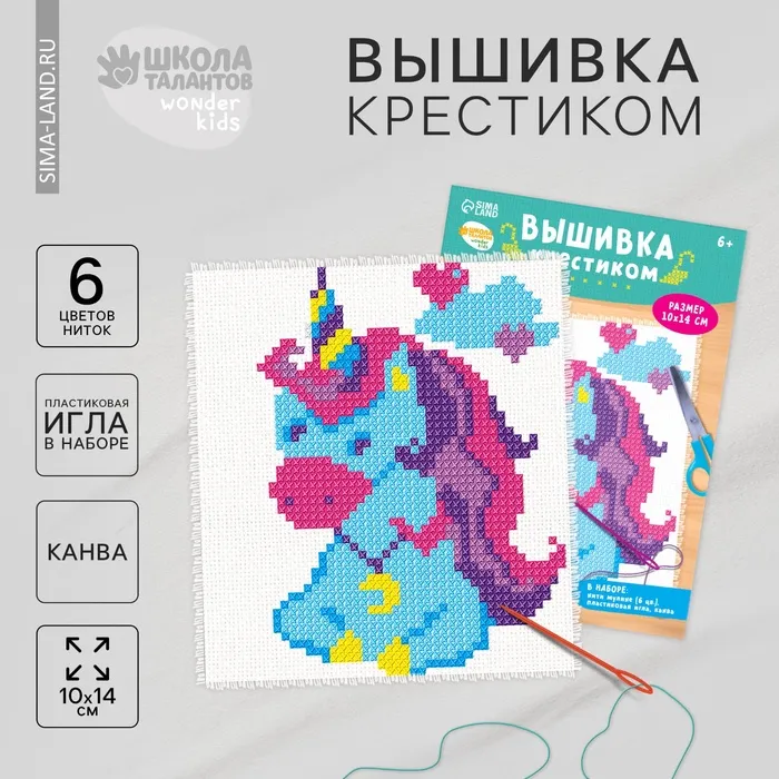 Вышивка крестиком для детей «Единорог», набор для творчества — Характеристики