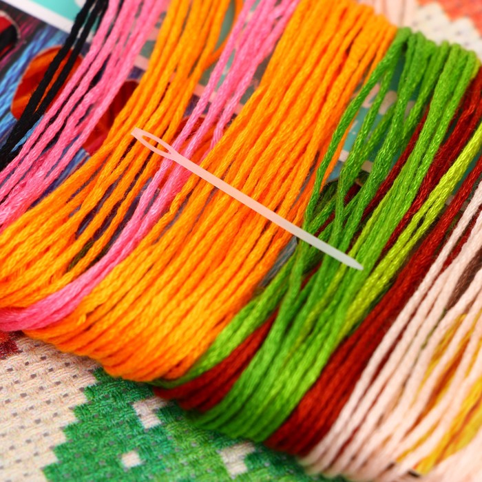 - Все необходимые оттенки ниток есть в комплекте. Рекомендуем вышивать в 2 нити.