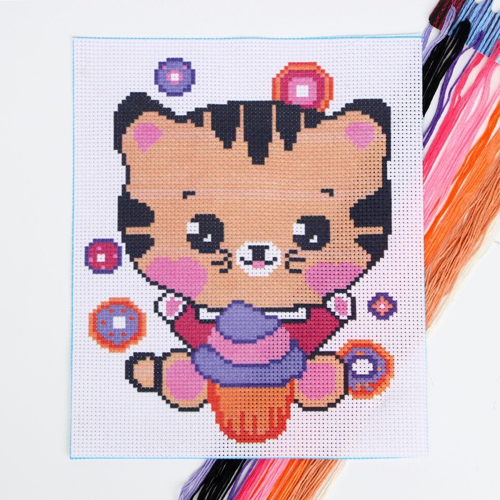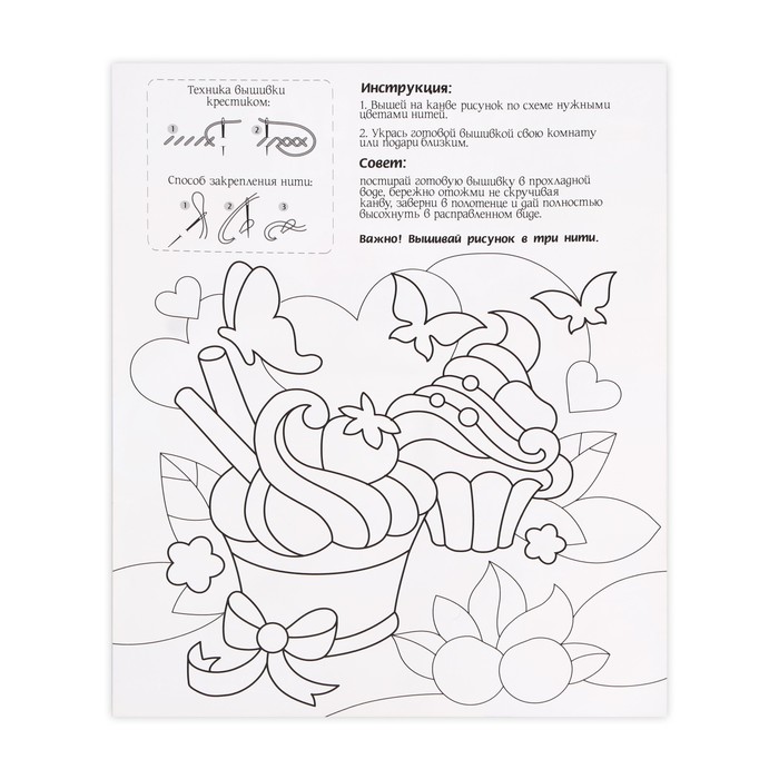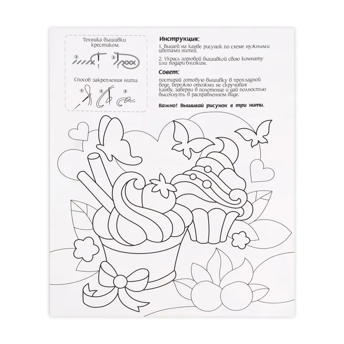 Вышивка крестиком для детей «Котик с капкейком», набор для творчества, 25 х 20 см — Характеристики