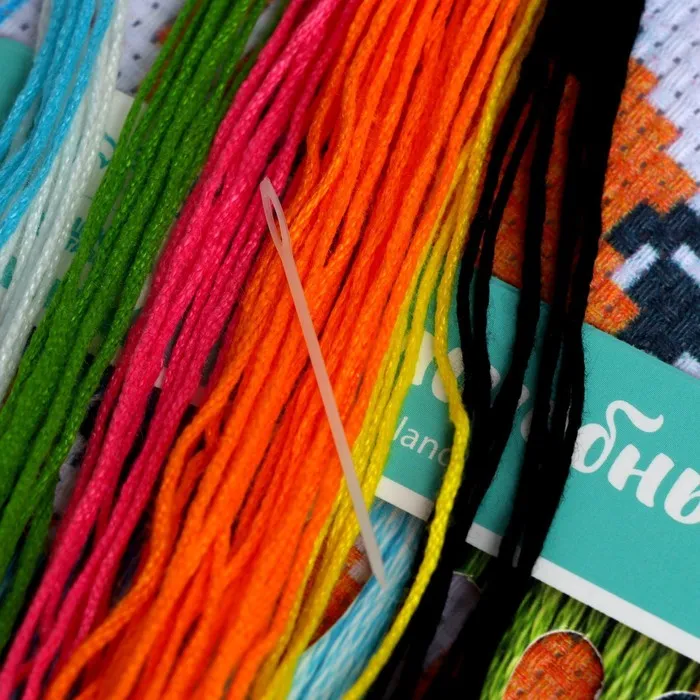 Небольшая вышивка с простым узором и цветной схемой — то, что нужно малышу, чтобы освоить новое хобби.