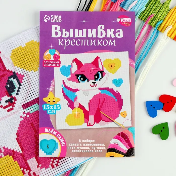 Вышивка крестиком для детей «Сказочная кошечка», набор для творчества, 15 Х 15 см — Характеристики