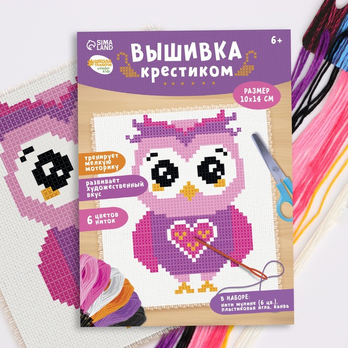 Вышивка крестиком для детей «Сова», набор для творчества, 14 х 10 см — Характеристики