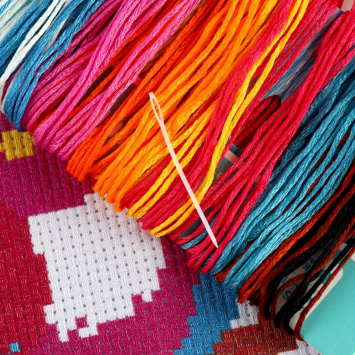 Небольшая вышивка с простым узором и цветной схемой — то, что нужно малышу, чтобы освоить новое хобби.
