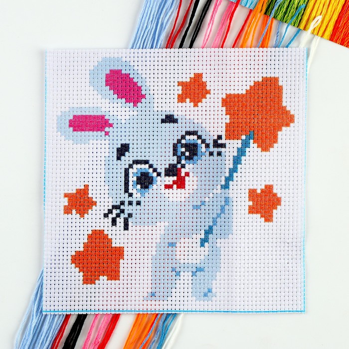 Небольшая вышивка с простым узором и цветной схемой — то, что нужно малышу, чтобы освоить новое хобби.