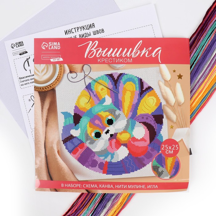 Вышивка крестиком «Иллюзорный кот», набор для творчестваа, набор для творчества, 25 х 25 см — Характеристики