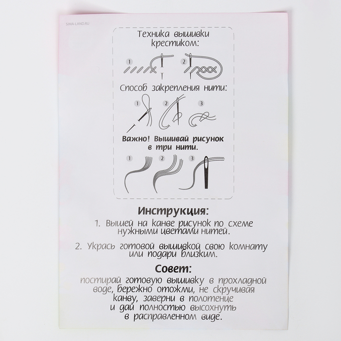 - Все необходимые оттенки ниток есть в комплекте. Рекомендуем вышивать в 2 нити.