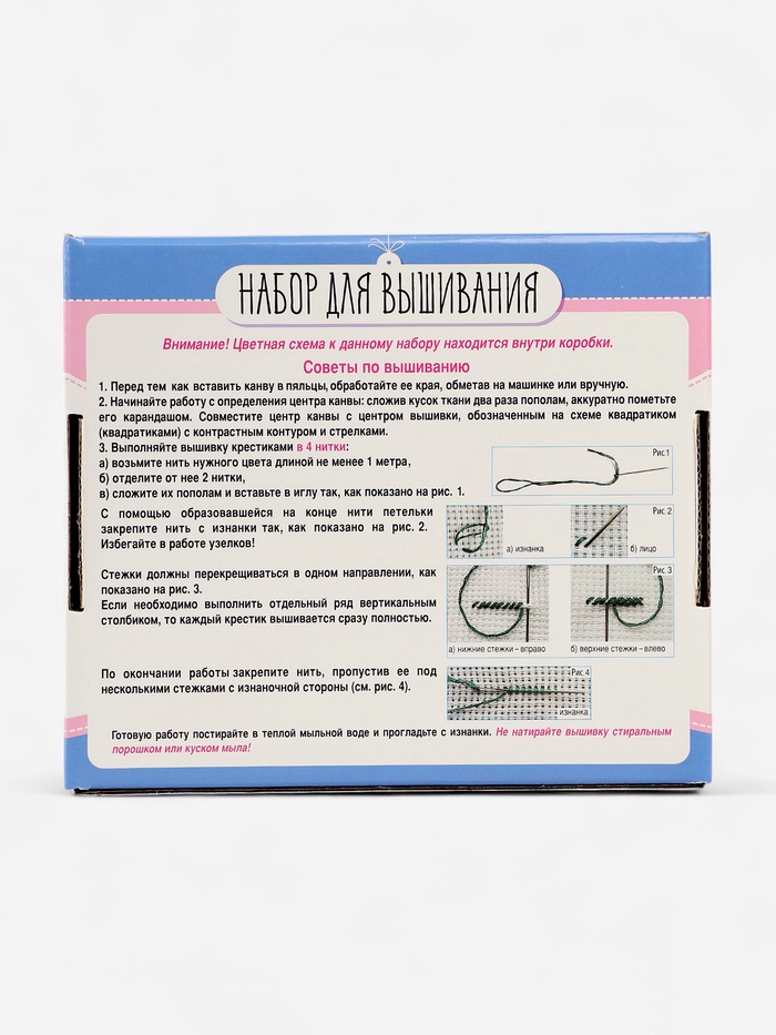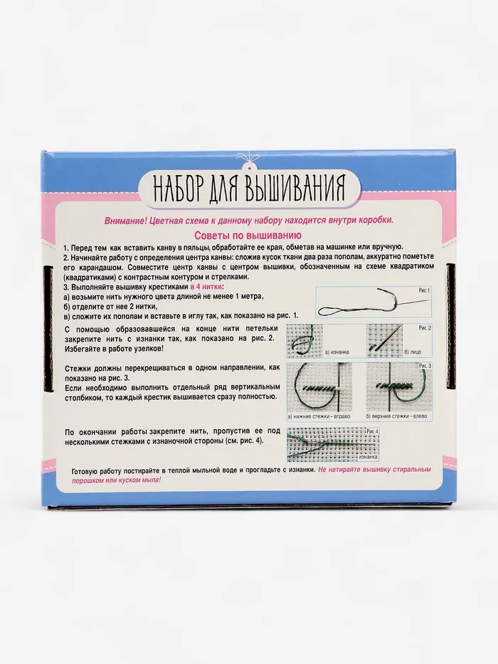 - Выполняйте вышивку крестиками в 4 нитки. Схемы правил вышивания крестиком смотрите на обратной стороне упаковки.