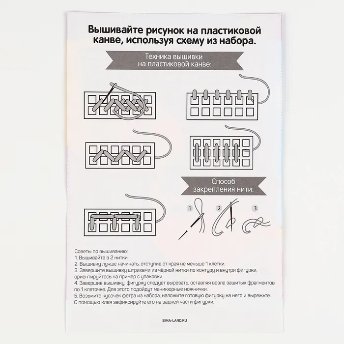 Вышивка — творческое занятие, которое направлено на развитие мелкой моторики у детей. Ребёнку предстоит продевать нити через специальные отверстия на пластиковой канве. Делать это предстоит с помощью безопасной пластиковой иглы из комплекта и в определенной последовательности, чтобы соблюсти рисунок и украсить персонажа.
