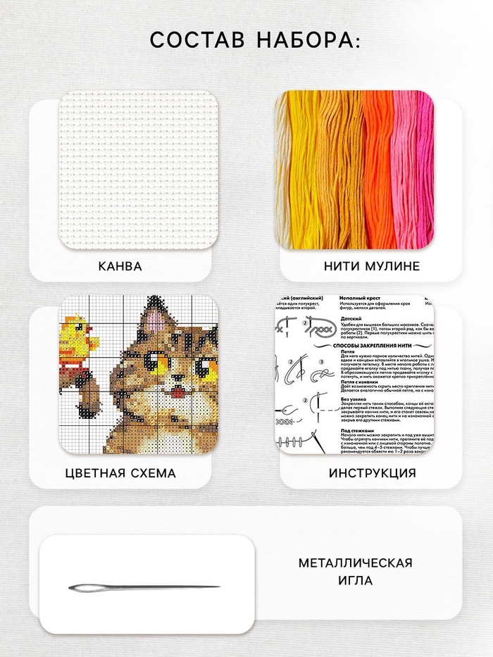 Вышивка крестиком «Пушистый котик и цыплята», набор для творчества, 16×18 см — Характеристики