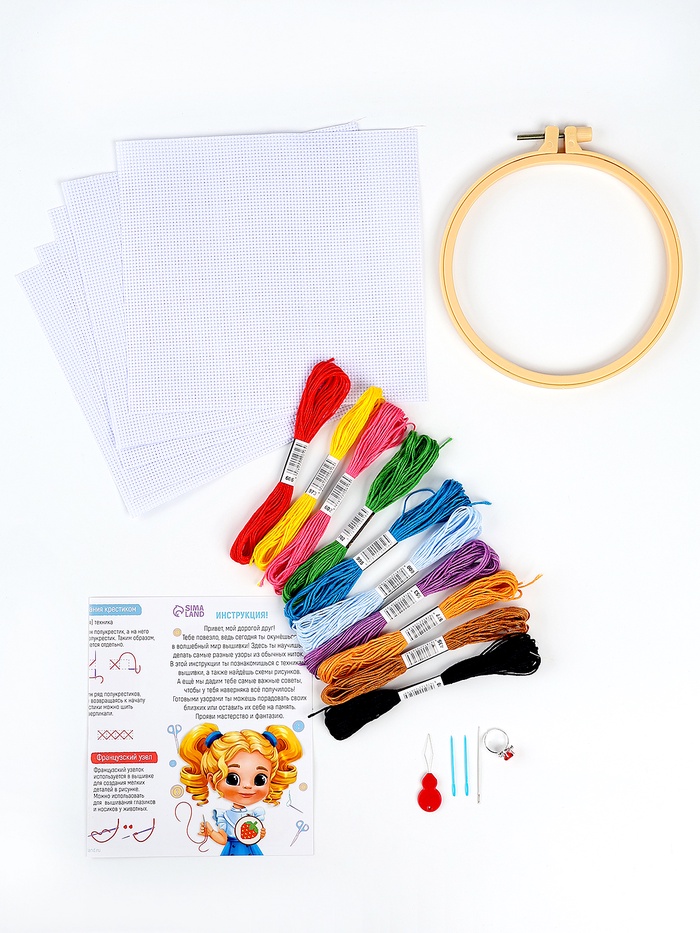 Вышивка крестиком с пяльцами для детей «Юная мастерица», набор для творчества — Характеристики