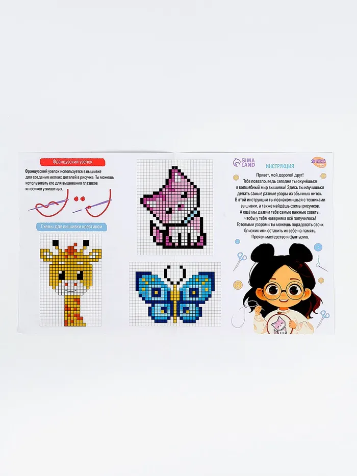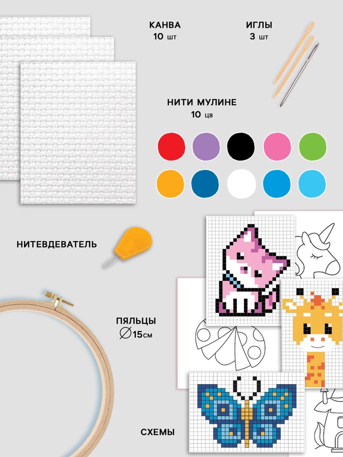 Вышивка с красивым рисунком и цветной схемой — то, что нужно малышу, чтобы освоить новое хобби!