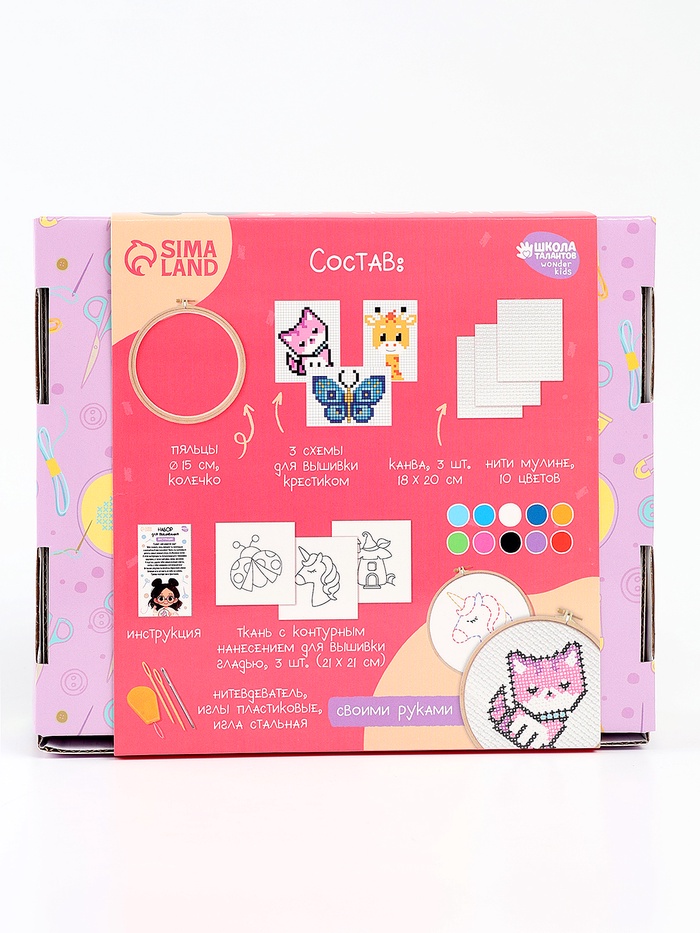 Вышивка крестиком с пяльцами для детей «Волшебные крестики», набор для творчества — Характеристики