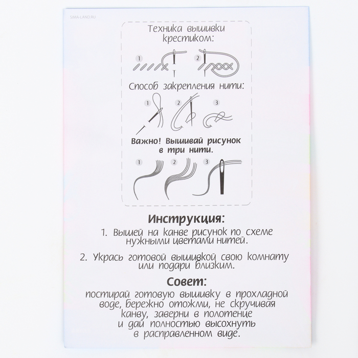 - Все необходимые оттенки ниток есть в комплекте. Рекомендуем вышивать в 2 нити.