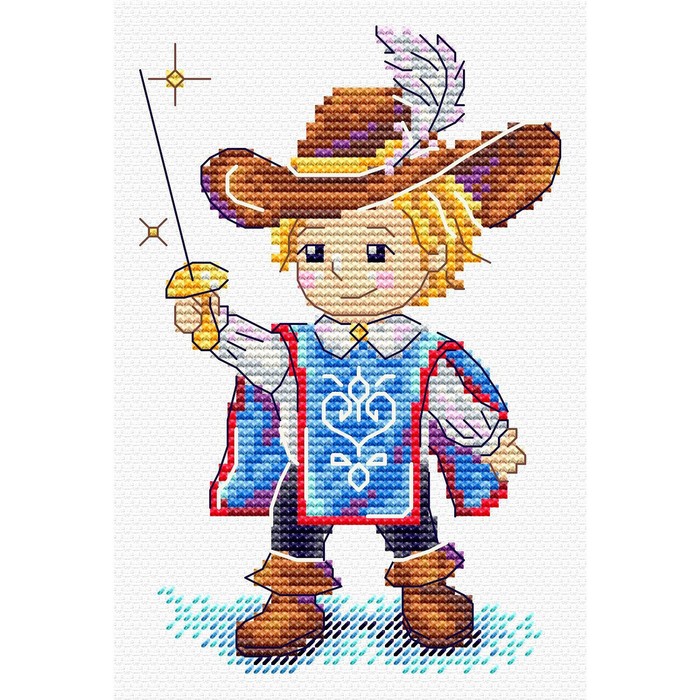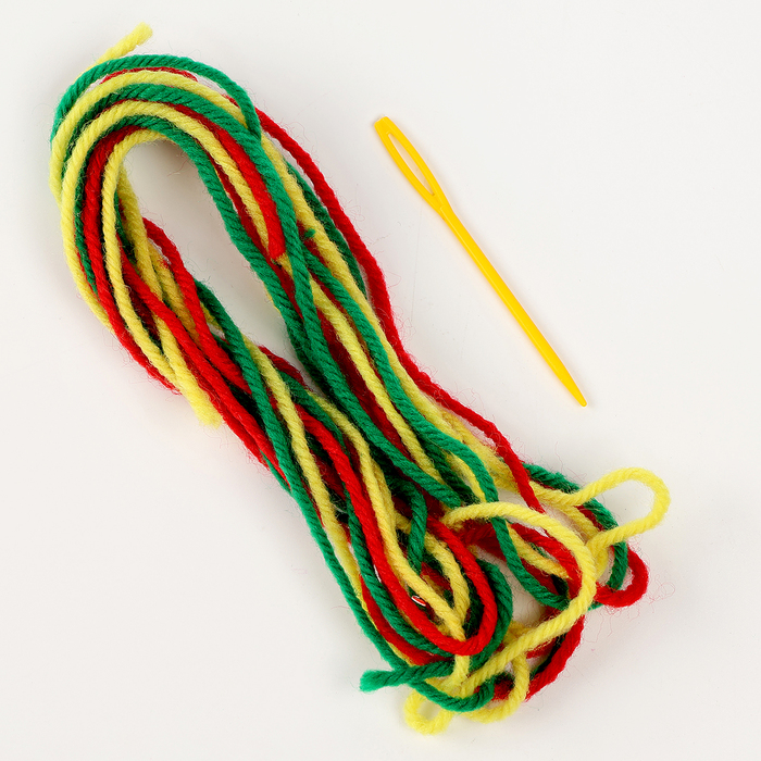 Покажите малышу, как пользоваться иглой. Можете быть спокойны, ребёнок не уколется — игла пластиковая. Вместе пройдите пару стежков и покажите, как сделать узелок. Когда ребёнок освоит технику, можно попробовать другие схемы стежков.