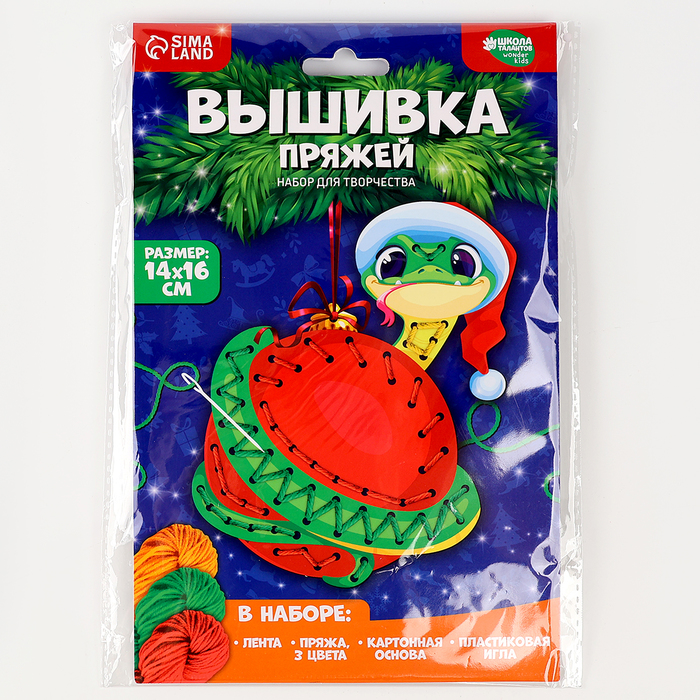 Вышивка пряжей на новый год «Змея»‎ на картоне, набор для творчества — Характеристики