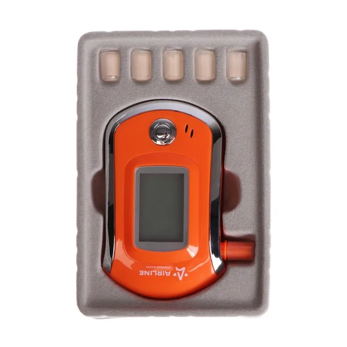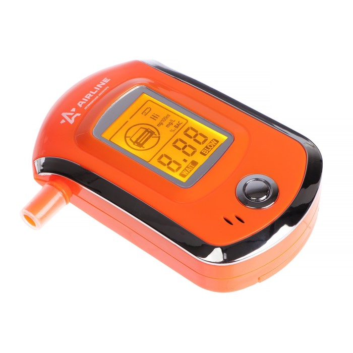 Алкотестер определяет уровень алкогольного опьянения бесконтактным способом. Информация о концентрации паров алкоголя в выдыхаемом воздухе отображается на большом светодиодном дисплее с подсветкой. Диапазоном измерения 0-2 промилле. Питание от трёх батареек ААА.