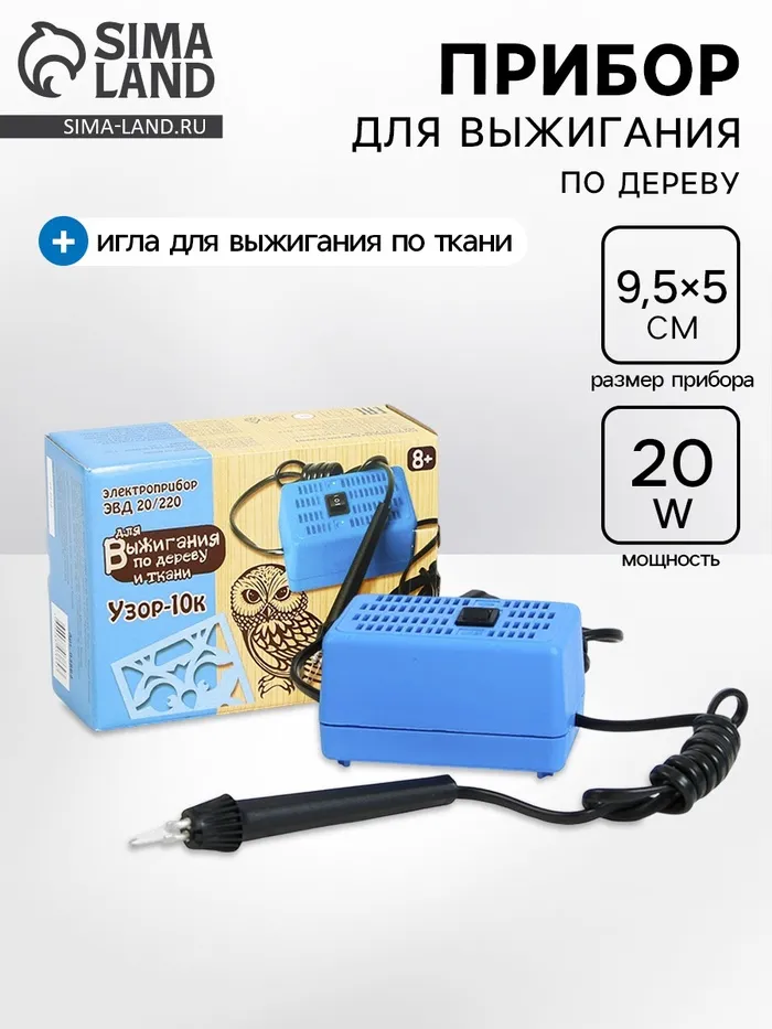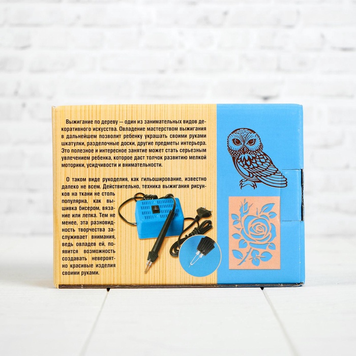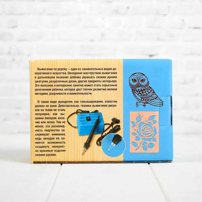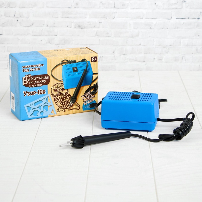 Освойте сразу 2 хобби: выжигание по дереву и выжигание по ткани с помощью электроприбора «Узор 10К»! Изделие подходит для детей от 8 лет.