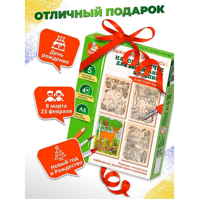 Выжигание по дереву — это популярное направление декоративно-прикладного искусства. Набор для выжигания и росписи «Звериное царство» станет отличным подарком для детей, способствующим развитию творческих навыков и интересному времяпрепровождению.