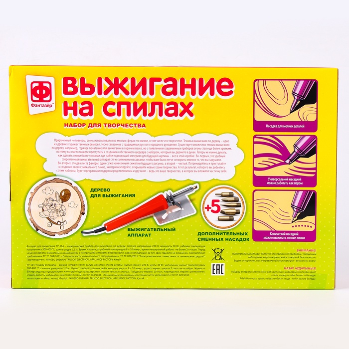Познакомьте ваших детей с увлекательным миром выжигания по дереву с помощью нашего специального набора. Этот набор поможет мальчикам и девочкам освоить технику выжигания, развивая их творческие способности и мастерство.