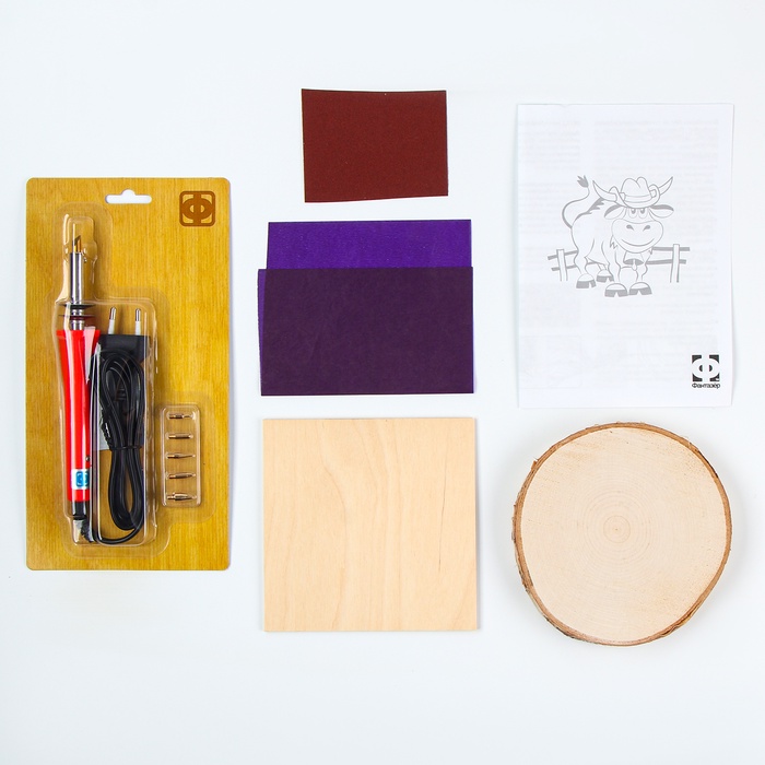 Выжигание по дереву, набор: прибор + 12 дощечек: 21.3×14.8×0.4 см, мощность: 220 В