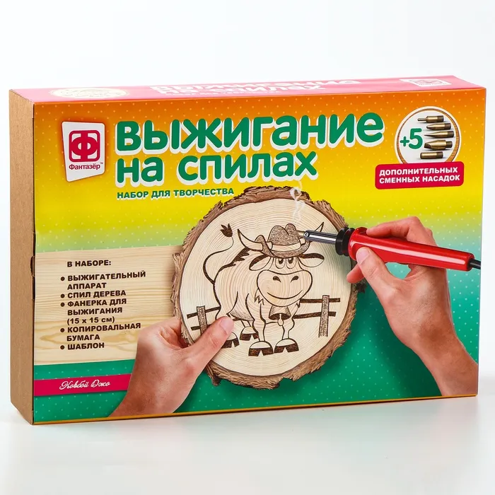 Выжигание по дереву: аппарат с насадками, доски 5 шт., набор для творчества
