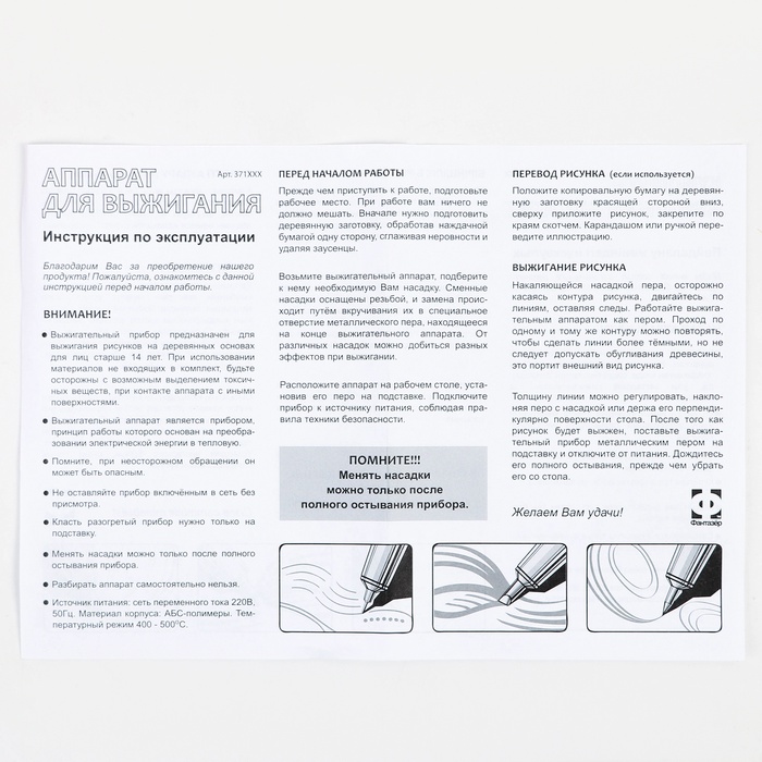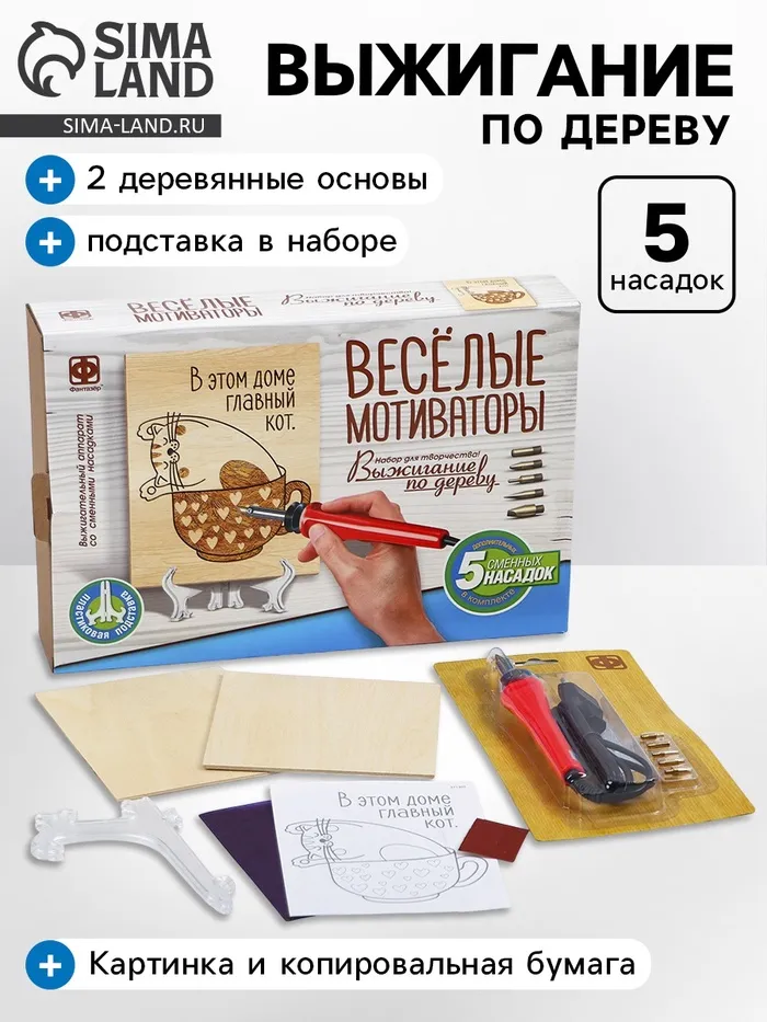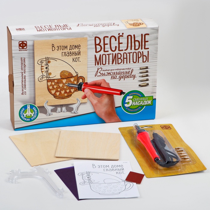 С набором для выжигания от торговой марки «Фантазёр» вы создадите картину, которая впишется в любой интерьер и каждый день будет напоминать, что жизнь прекрасна и мотивировать всех членов семьи улыбаться чаще! Особенно если картинку разместить на видном месте или установить на любой полочке с помощью пластикового мольберта.