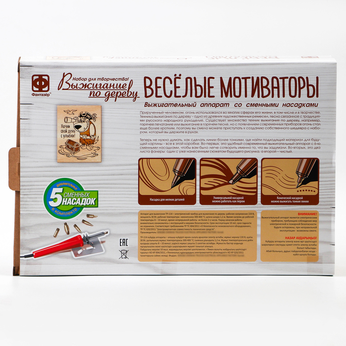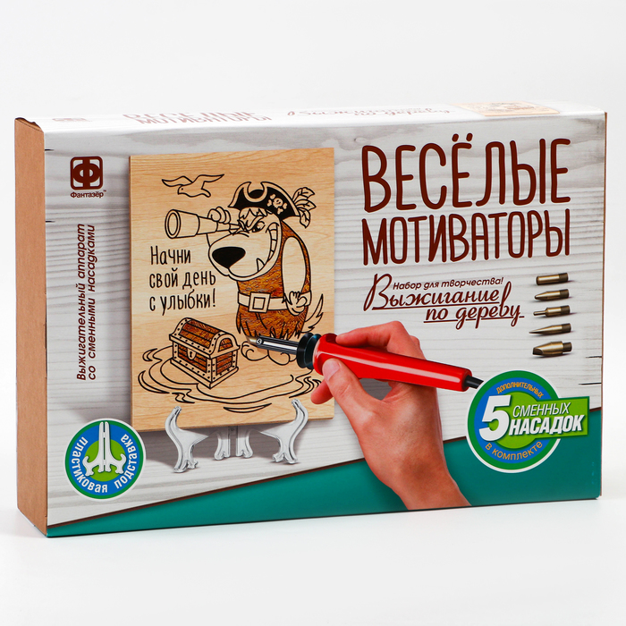 С набором для выжигания от торговой марки «Фантазёр» вы создадите картину, которая впишется в любой интерьер и каждый день будет напоминать, что жизнь прекрасна и мотивировать всех членов семьи улыбаться чаще! Особенно если картинку разместить на видном месте или установить на любой полочке с помощью пластикового мольберта.