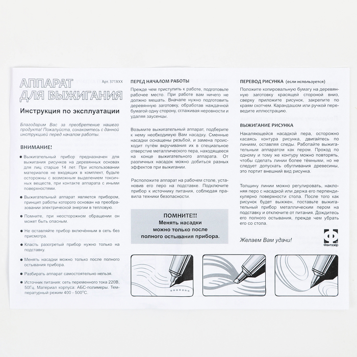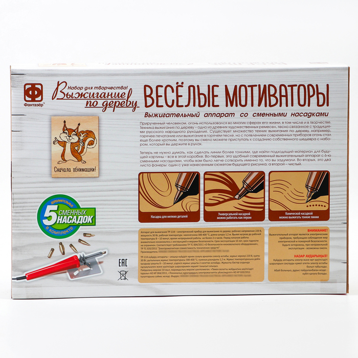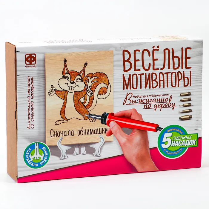 С набором для выжигания от торговой марки «Фантазёр» вы создадите картину, которая впишется в любой интерьер и каждый день будет напоминать, что жизнь прекрасна и мотивировать всех членов семьи улыбаться чаще! Особенно если картинку разместить на видном месте или установить на любой полочке с помощью пластикового мольберта.