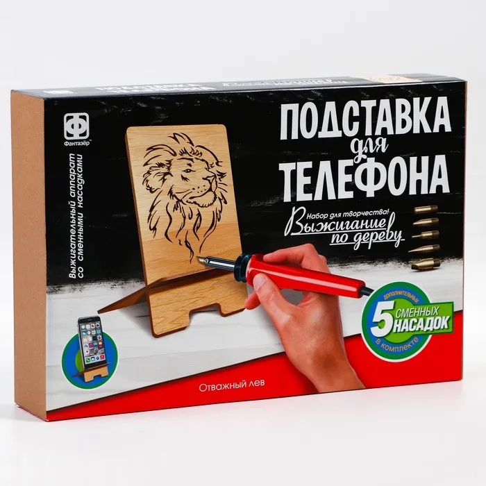 Выжигание, подставка для телефона «Отважный лев» — Характеристики