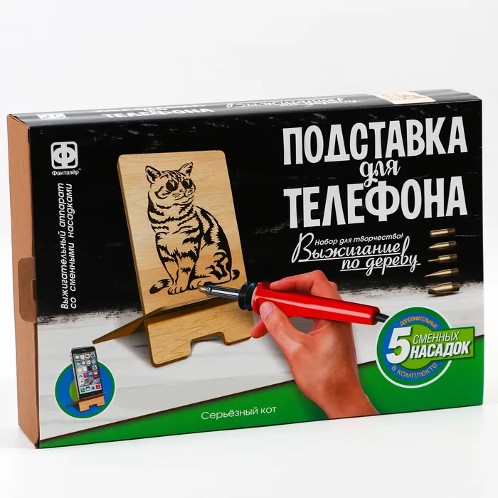 С набором для выжигания от торговой марки «Фантазёр» вы создадите подставку для телефона, которая впишется в любой интерьер и будет приносить пользу.
