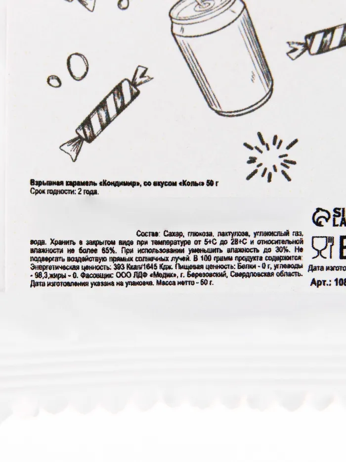 Взрывная карамель со вкусом коллы "Кондимир", 50г — Характеристики